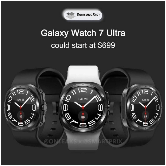 가격에 대해서는, 갤럭시 워치7 울트라의 경우 한화로 약 60만원대로 예상되며, 이는 LTE 모델과 스트랩을 포함한 가격입니다. 하지만 삼성 공식 출처에 따르면, 가격은 $699(약 94만원)가 될 것으로 보입니다. 이는 갤럭시 워치7 시리즈 중에서도 최고급 프리미엄 모델에 해당되고 다소 높은 가격대로, 고급스러운 디자인과 강화된 기능을 반영한 것으로 해석됩니다.