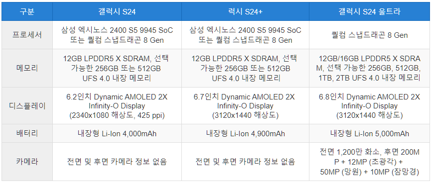 ✅ 갤럭시 S24 시리즈의 스펙은 어떻게 될까요?
