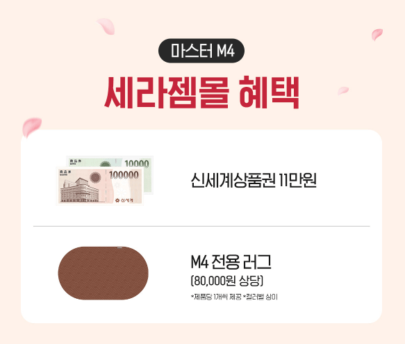 ㅇ 렌탈 서비스를 이용하시면, 신세계상품권 11만원과 M4 전용러그를 받고 무료 A/S와 정기적인 청소 서비스도 받으실 수 있습니다.