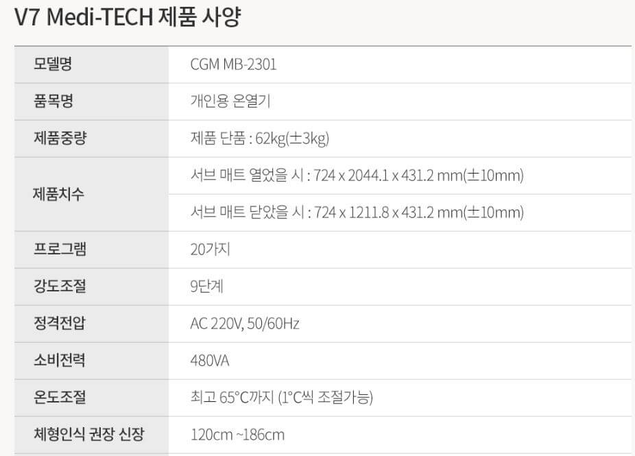 | V7 | 1개 | 펼쳤을 때 724 * 2,044.1 * 431.2mm | 540만원 |