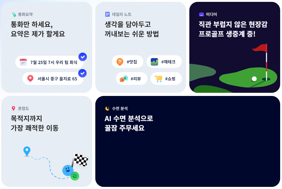 T전화의 기본적인 기능은 유지하면서, AI를 활용한 다양한 편의 기능을 추가하여 더욱 똑똑하고 편리한 통화 경험을 제공합니다.