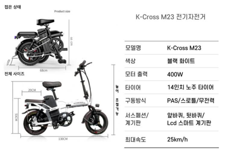 3. K 크로스 M23 48V 400W 접이식 전기자전거