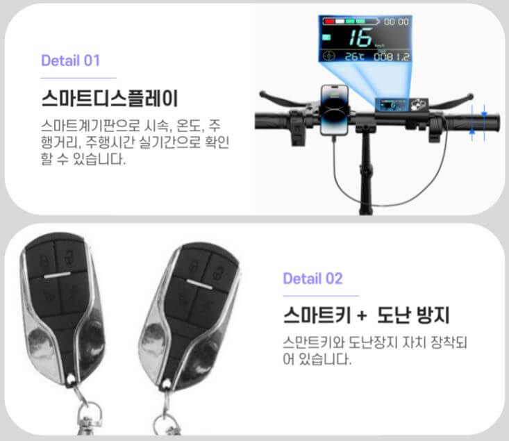 또한, LCD 디스플레이와 스마트키 와 도난 방지 등의 부가 기능도 잘 갖추고 있습니다.