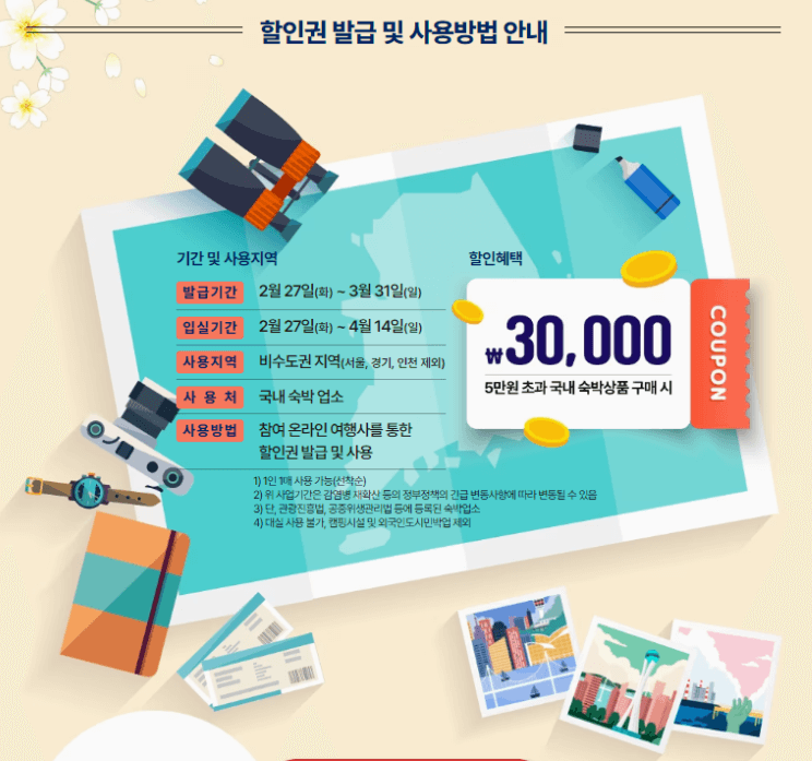 ㅇ 전국 다양한 숙박시설에서 할인 혜택을 누리며, 봄의 정취를 만끽할 수 있습니다.