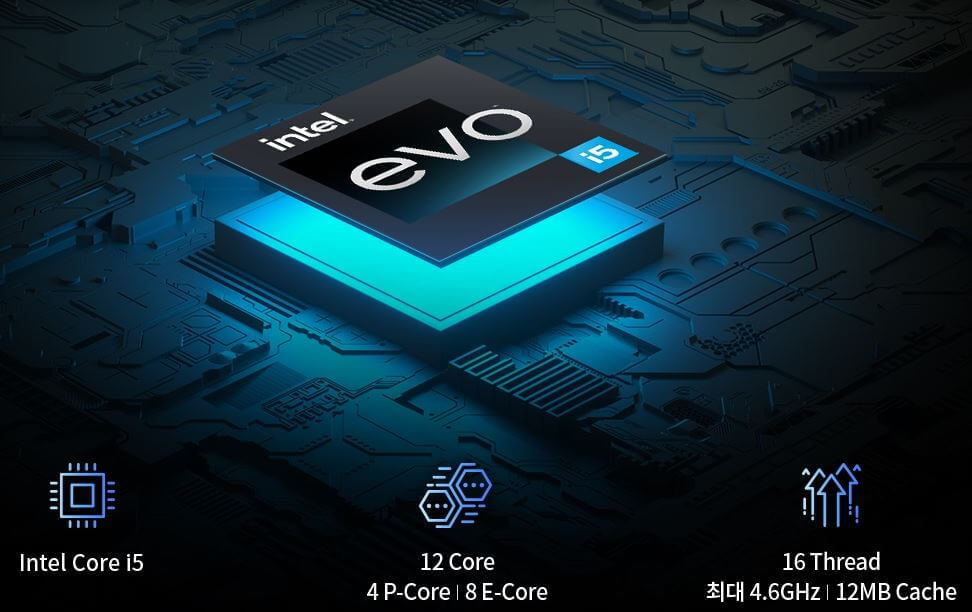 - 인텔 에보 인증은 인텔이 제시하는 까다로운 제품 사양을 통과한 노트북에 부여되는 인증으로, 최신 13세대 인텔 코어 프로세서 사용, 최상의 화질과 음질, 초고속 충전, 기가 인터넷, 초슬림 디자인 등의 조건을 만족해야 합니다.
