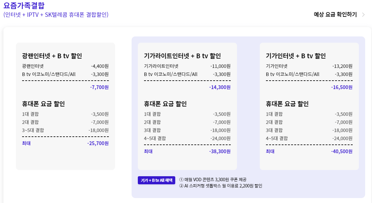ㅇ 인터넷, 휴대전화 최대 5회선까지 결합 가능